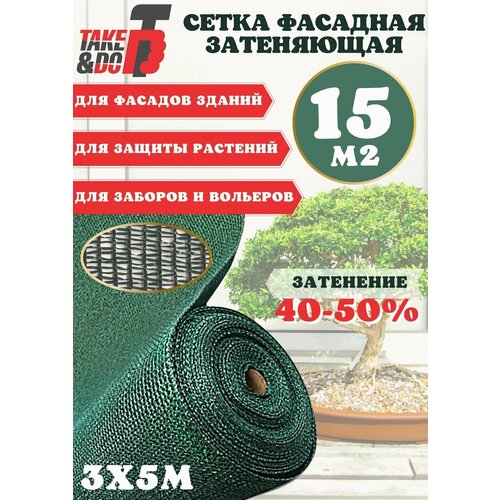 Сетка затеняющая фасадная от солнца для огорода, теплиц, для навеса, для забора сверхплотная 3,0х5м зеленая, плотность 80г/м2 TAKE&DO