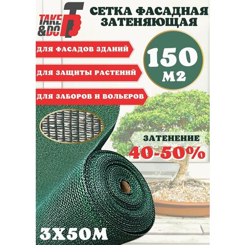 Сетка затеняющая фасадная 3,0х50м зеленая, плотность 55г/м2 TAKE&DO