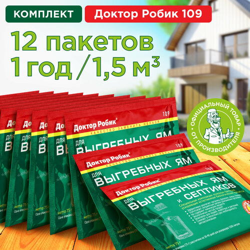 Бактерии для септиков, выгребных ям и дачных туалетов "Доктор Робик 109", комплект 12 шт. по 75 г.