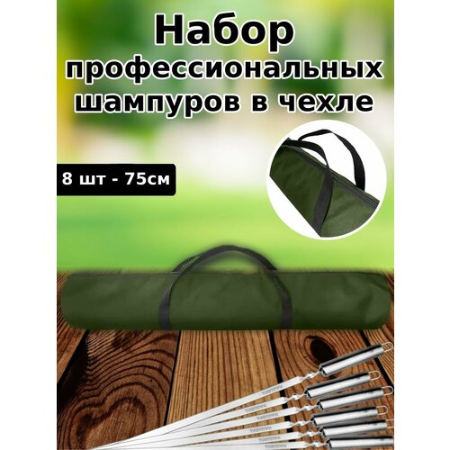 Комплект шампуров TuoTown (8 шт - 75 см, полая рукоять из нержавейки) в сумке цвета хаки