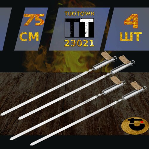 Шампуры TuoTown 4 шт (23021 - 75 см), полая рукоять из нержавейки