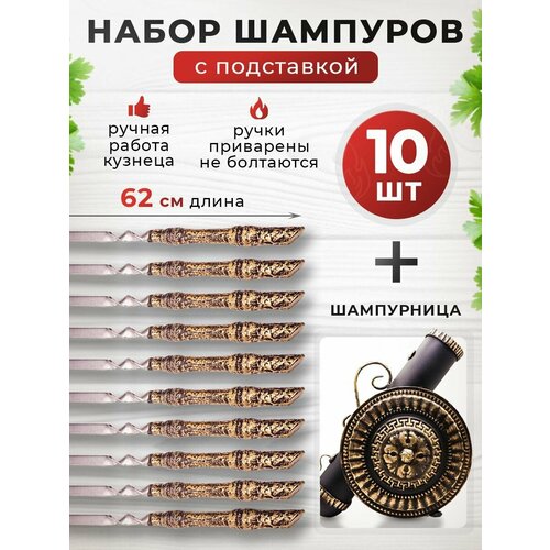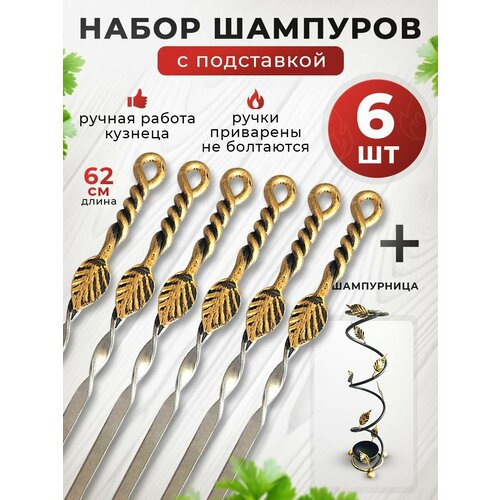 Набор шампуры "Росток" (комплектация: 6 шт.) + Шампурница "Росток" цвет: золото, длина: 62 см.