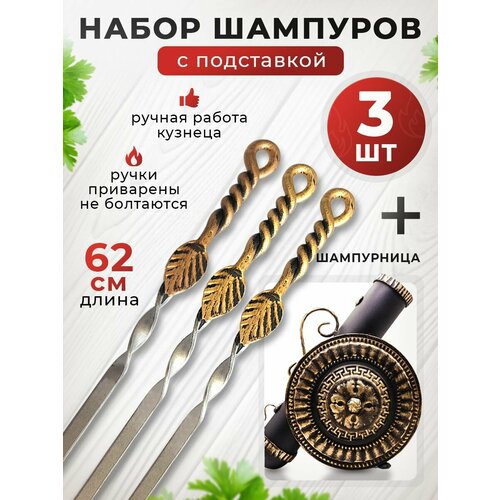 Набор шампуры "Росток" (комплектация: 3 шт.) + Шампурница "Пушка" цвет: золото, длина: 62 см.