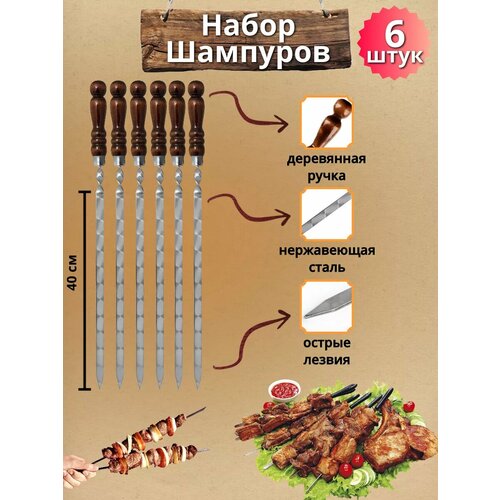 Набор шампуров с деревянной ручкой 40 см (6 штук)