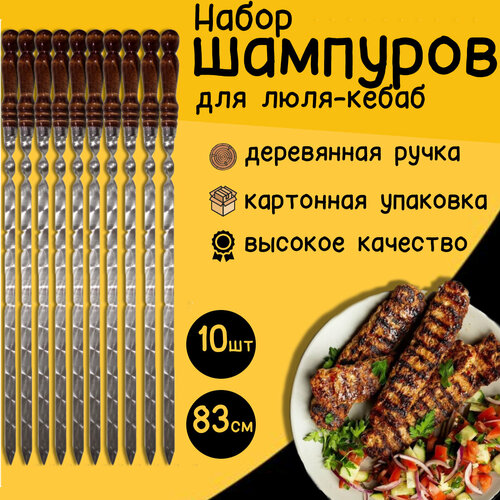 Шампура с деревянной ручкой 10 штук, длина 73 см