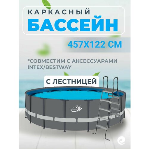 Бассейн Poolmagic "Blue Bay", каркасный, круглый, с лестницей, серый/голубой, 457x122 см