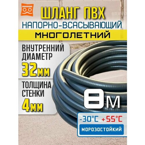 Ассенизаторский шланг для дренажного насоса 32 мм (8 м). Морозостойкий шланг для откачки.