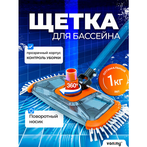 Щётка черно-оранжевая донная для пылесоса Vommy Premium для уборки/чистки бассейна, без штанги