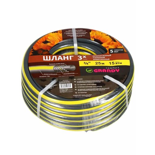 Шланг поливочный, 3/4 ', диам 20 мм, армир, 25 м, Grandy, Comfort, ПВХ, AGL2223425 429378