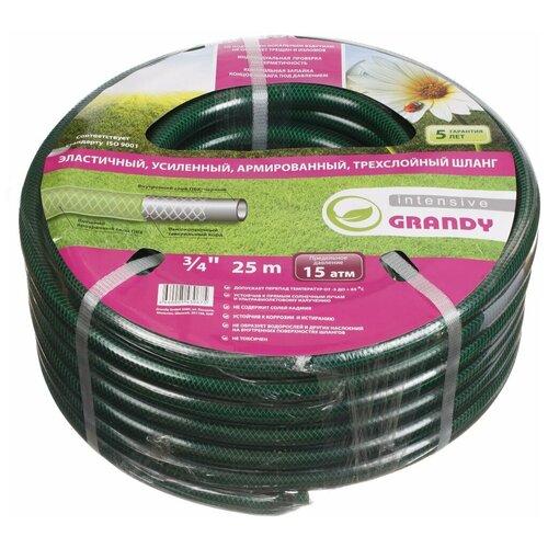 Шланг поливочный, 3/4 ', диаметр 20 мм, 15 атм, армированный, 25 м, 3 слоя, Grandy, Intensive, ПВХ, усиленный