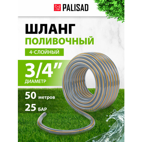 Шланг поливочный Palisad прозрачный армированный 3-х слойный, 3/4", 25 м 67364