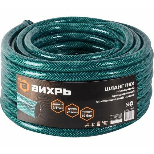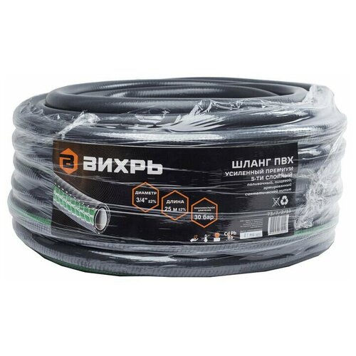 Шланг ВИХРЬ ПВХ 3-х слойный армированный, 3/4", 25 м