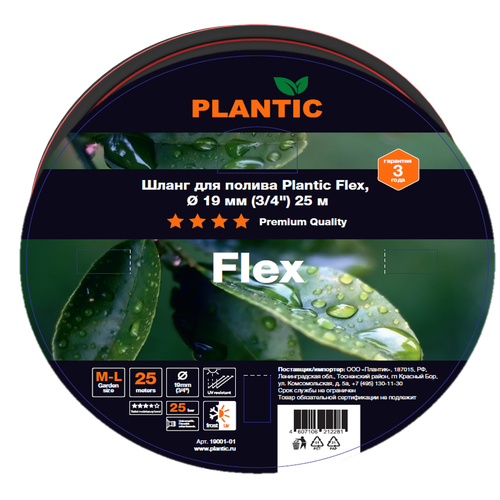 Шланг садовый Plantic Flex 19001-01, диаметр 19 мм (3/4") 25 м