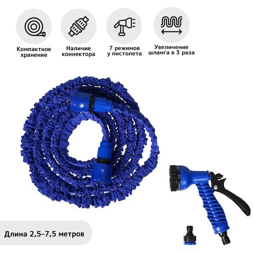 Чудо-шланг, латекс, L = 2.5–7.5 м, 2-слойный, нейлоновая оплётка, распылитель 7 режимов, штуцер 12 мм (1/2"), 19 мм (3/4")