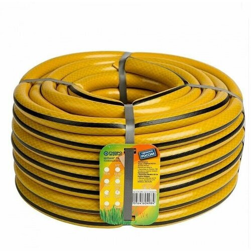 Шланг поливочный Гидроагрегат 1/2 дюйма, 25 м армированный, 3-х слойный желтый с черной полосой