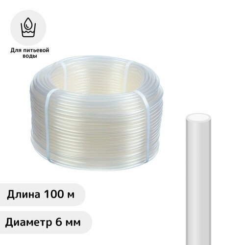 Шланг, ПВХ, d = 6 мм, L = 100 м, пищевой, прозрачный