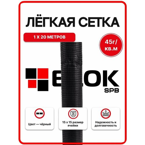 Лёгкая сетка пластиковая 1х10м, 15х15мм, черная 45гр/м2 садовая, для клеток, сада, цветов 4620214450888