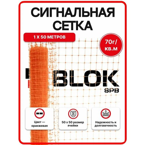 Сигнальная сетка пластиковая 1х50м 50х50мм оранжевая 70гр/м2 аварийная, 4620214450826
