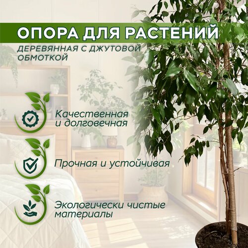 Опора для растений деревянная в джутовой обмотке, дл. 120 см.