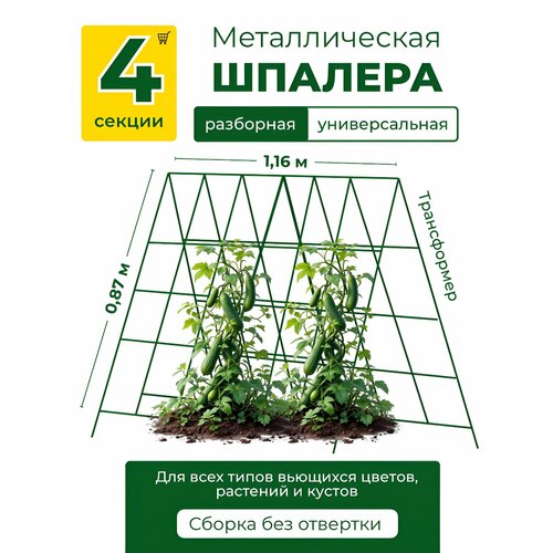 Шпалера для огурцов, опора для растений садовых, 4 секции, металлическая