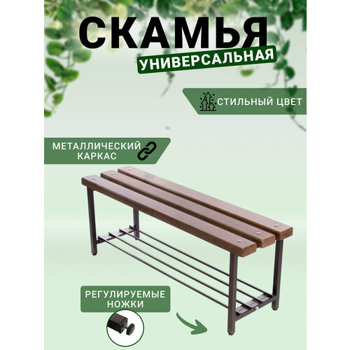 Скамья для раздевалки с полкой для обуви и регулировкой ножек, покрытие и антик, 1,2 м. орех