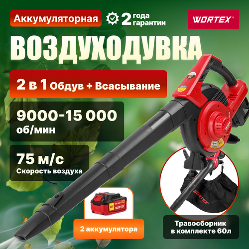 Аккумуляторная воздуходувка WORTEX BB 2536-1 D, 18В+18В, 2акб, 4 Ач