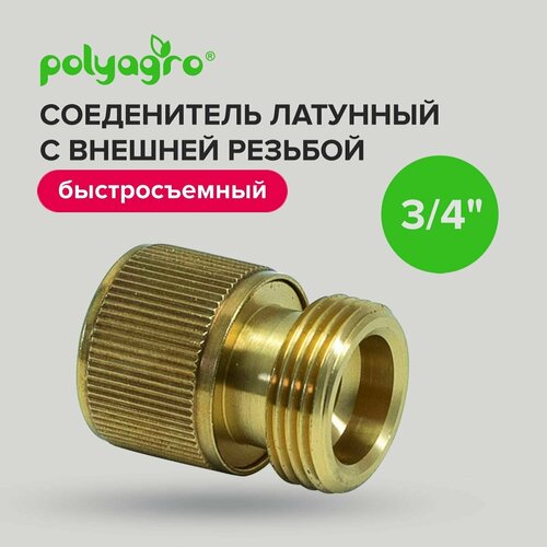 Соединитель быстросъемный с внешней резьбой 3/4 от POLYAGRO выполнен из латуни. Имеет эргономичную форму и соединяет водопроводную ...