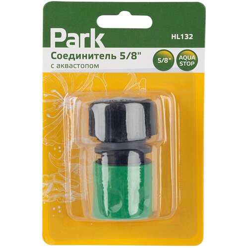 Соединитель для шлангов Park HL132, с аквастопом, 5/8"