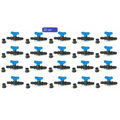 Кран для капельной трубки с резиновым уплотнителем для подсоединения к ПНД трубе - 20 шт