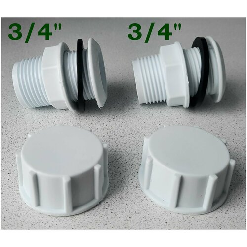 Отвод (2 шт.) от бака с резьбой 3/4" (три четверти дюйма), с крышкой