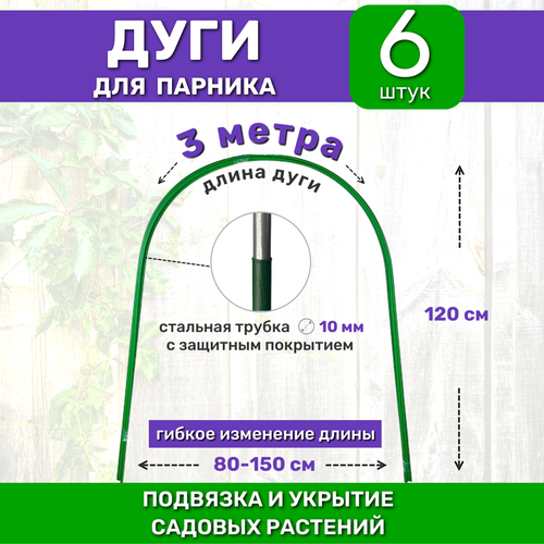 Садовые дуги для парника, грядок и растений (6 штук), длина 3 м, диаметр 10 мм, металлические в ПВХ