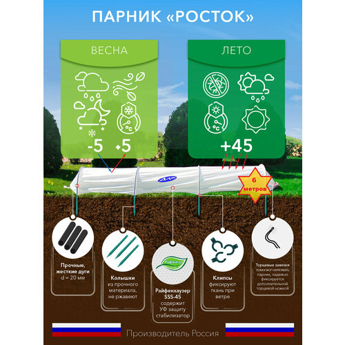 Парник для дачи 6 метров, дуги, готовый прошитый чехол для парника, колышки для установки, клипсы