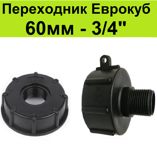 Крышка переходник для еврокуба (2шт) упорная резьба 60 мм на 3/4. Переход адаптер на евробак под кран