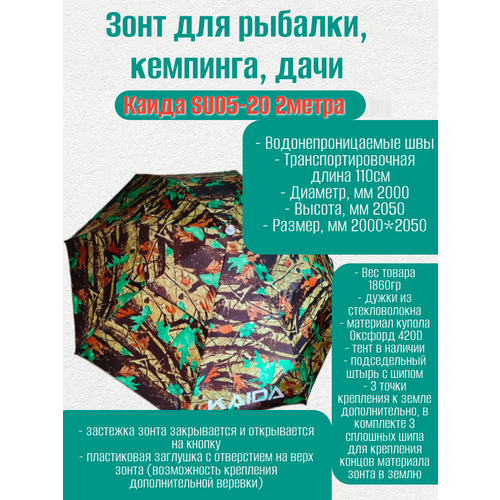 Зонт для рыбалки, кемпинга, дачи Каида SU05-20 2 метра, с боковым наклоном Camouflage