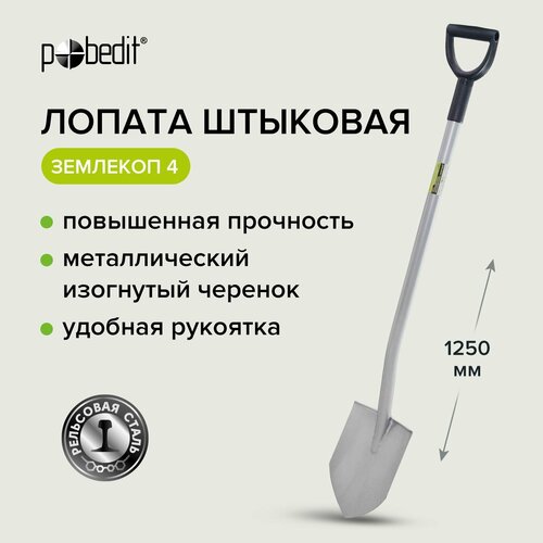 Лопата штыковая с металлическим черенком и ручкой землекоп, Pobedit
