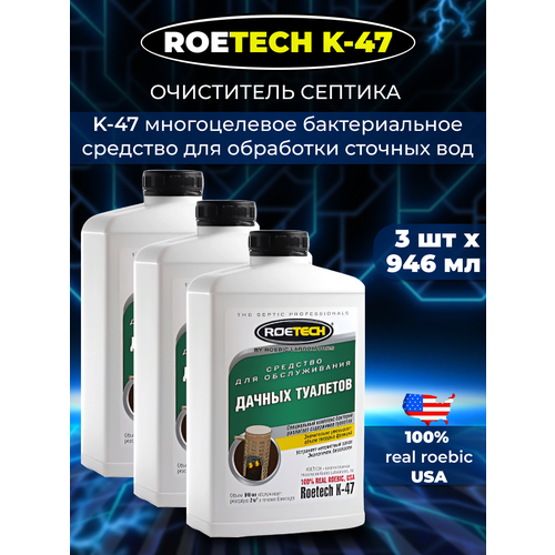 3шт: Roetech K-47 Средство для выгребных ям, 946 мл