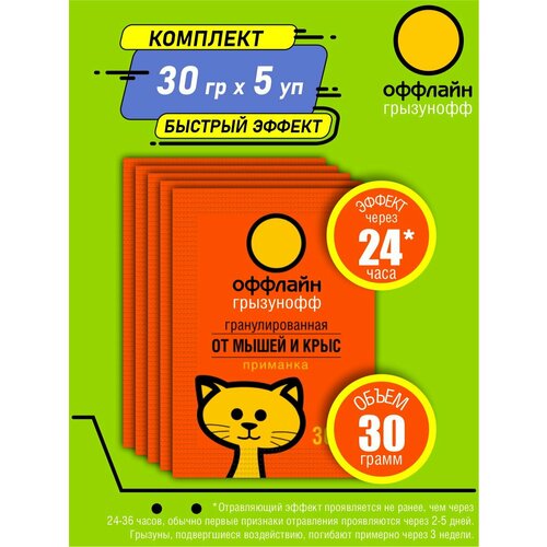 Комплект Грызунофф оффлайн Гранулы от грызунов 30 гр. х 5 шт.