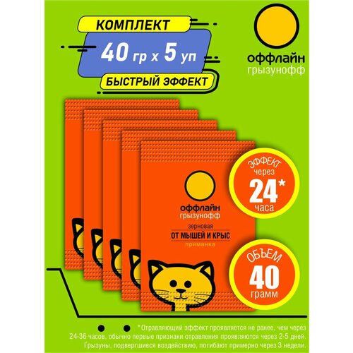 Комплект Грызунофф оффлайн Зерновая приманка от грызунов 40 гр. х 5 шт.