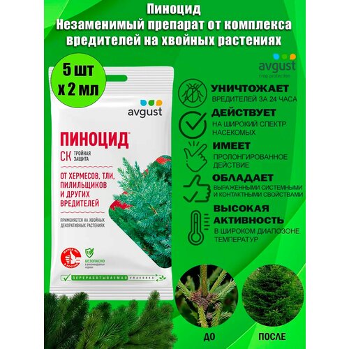 Незаменимый препарат от комплекса вредителей на хвойных растениях Пиноцид Avgust, 2 мл