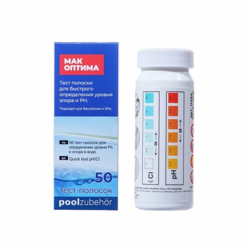 Тестер для быстрого определения уровня РН и свободного хлора Мак Оптима, 50 шт