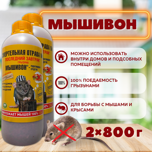 Средство от мышей Мышивон 800 г набор 2 флакона