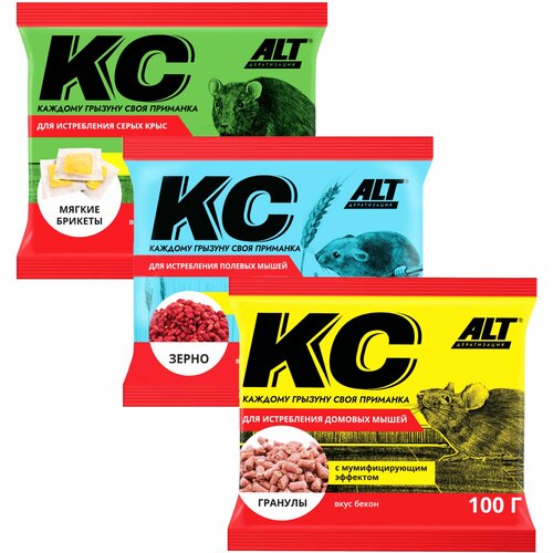 Отрава для крыс и мышей ALT Крысиная Отрава, крысиный яд в мягких брикетах, 100 г (комплект 2 шт)