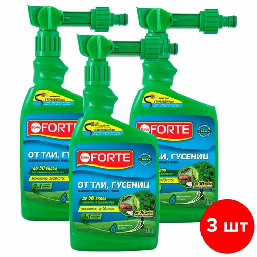 Средство от тли, гусениц и других насекомых Bona Forte концентрат, эжектор флакон 3 шт по 1 л