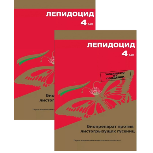 Биопрепарат от листогрызущих гусениц "Лепидоцид", 2 ампулы по 4 мл. Эффективен против таких гусениц, как листовертка, моль, плодожорка, совка, огневка
