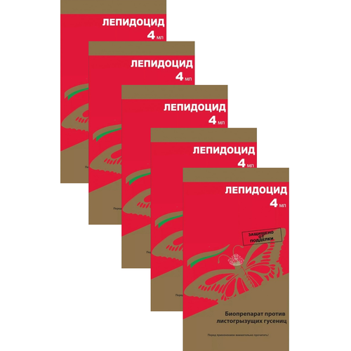 Биопрепарат от листогрызущих гусениц "Лепидоцид", 5 ампул по 4 мл. Эффективен против таких гусениц, как листовертка, моль, плодожорка, совка, огневка