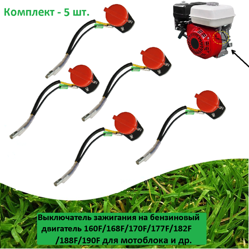 Выключатель зажигания (5 шт.) (кнопка вкл/выкл) на бензиновый двигатель 160F/168F/170F/177F/182F/188F/190F для мотоблока