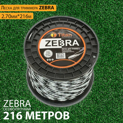 Леска для триммеров ZEBRA (бобина) 2.70мм*216м, белый+черный, витая, особо прочная