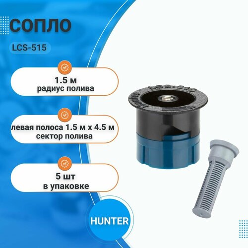 Сопло полосовое левый угол LCS 515 (5 шт), форсунка веерная для спринклера (дождевателя), автополив (орошение) сада и газона, радиус полива 1.5х4.5 м, HUNTER