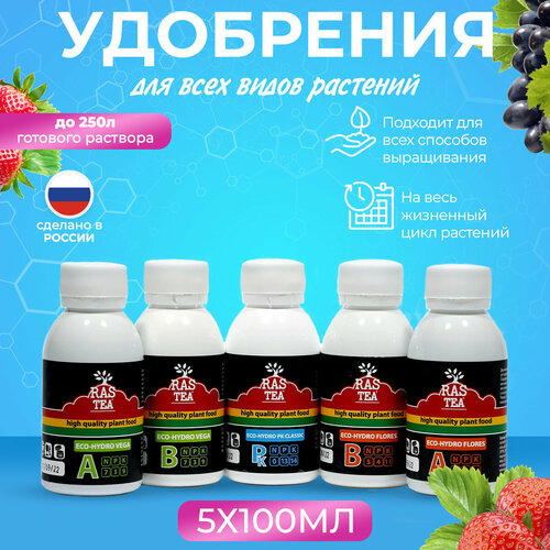 Комплект базовых удобрений Rastea 5х100 мл / Удобрение для цветов, рассады, растений универсальное