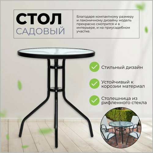 Стол садовый 60 х 70 см, цвет черный, столешница стекло